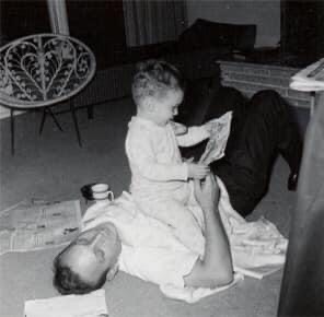 When I was very young, we were dirt poor, and there was no chair (ignore the one in the background of the shot) for me to sit and read, so my father would patiently lie on the ground and be my chair so I had a comfy spot to settle in and read the good stuff.